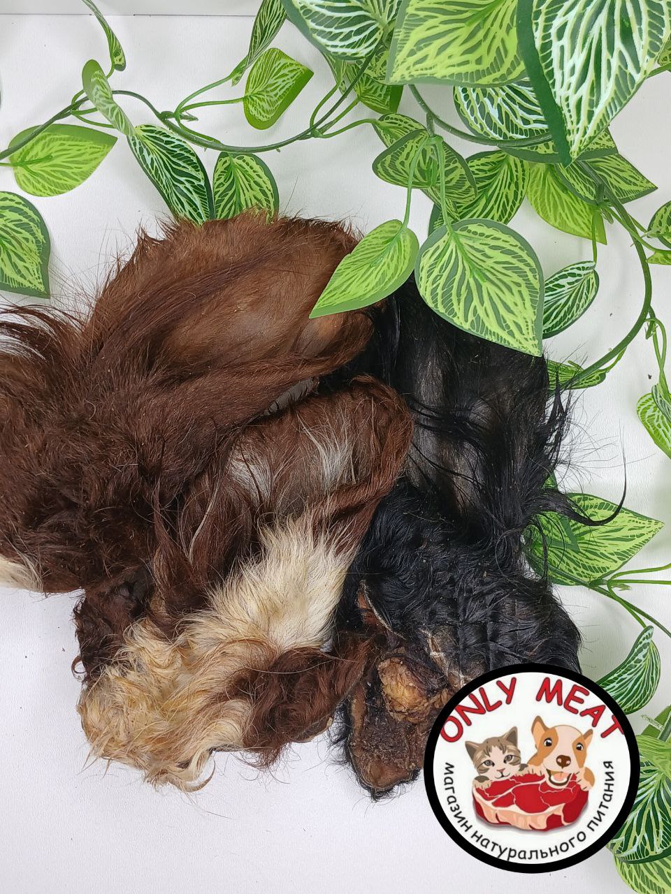Нарезка: ухо целое, имеет мясную основу, присутствует шерсть в допустимом количестве.